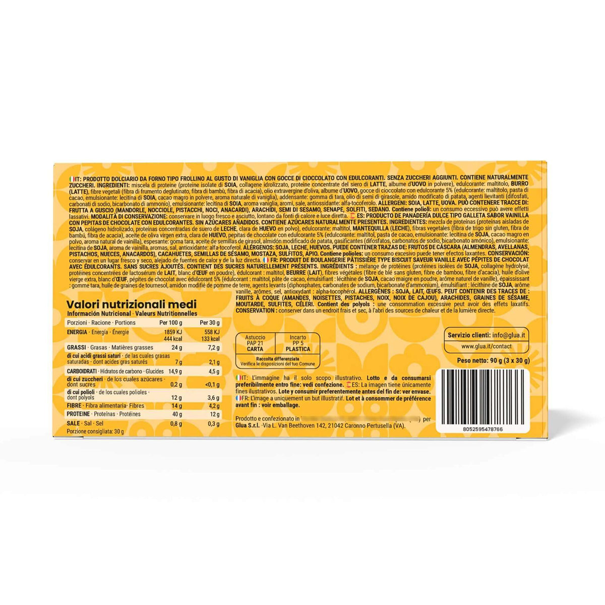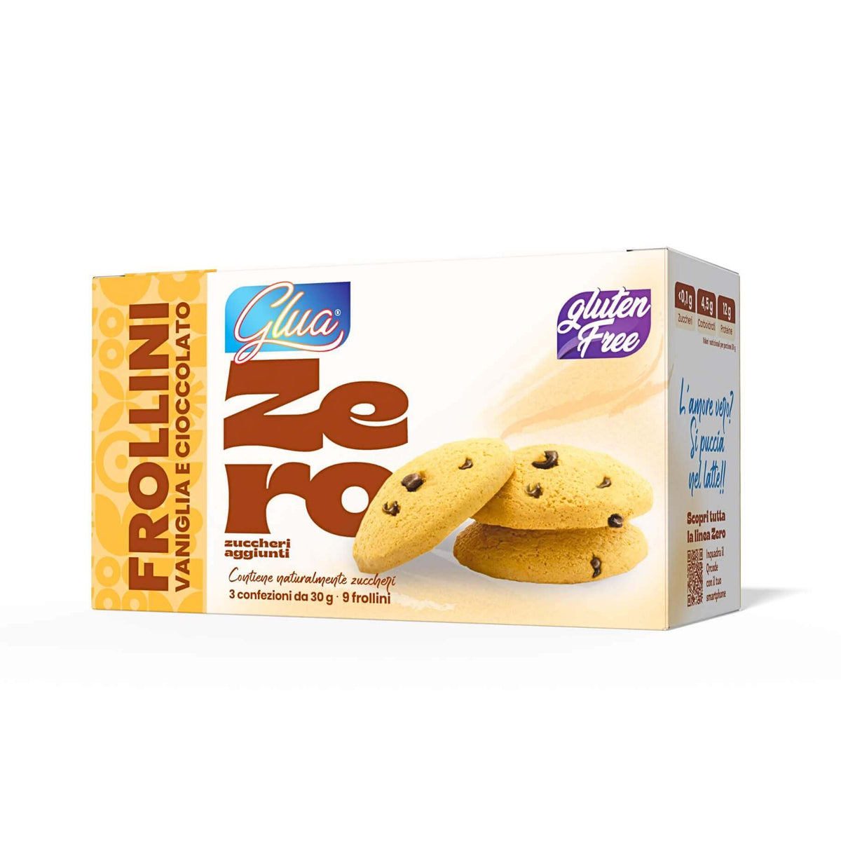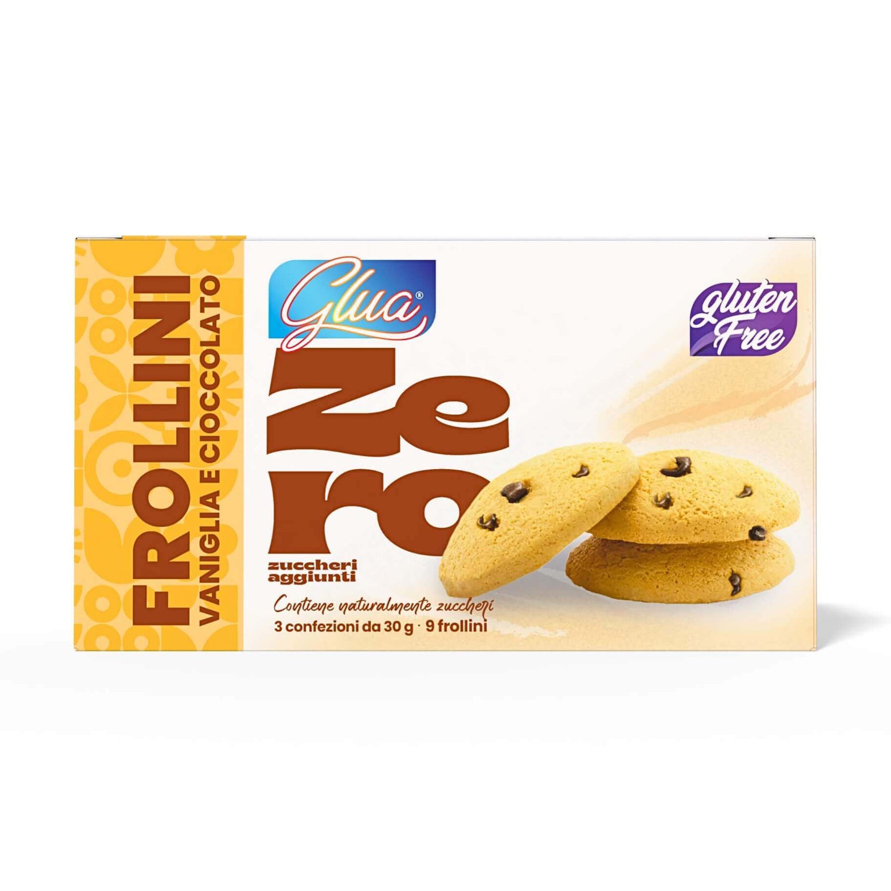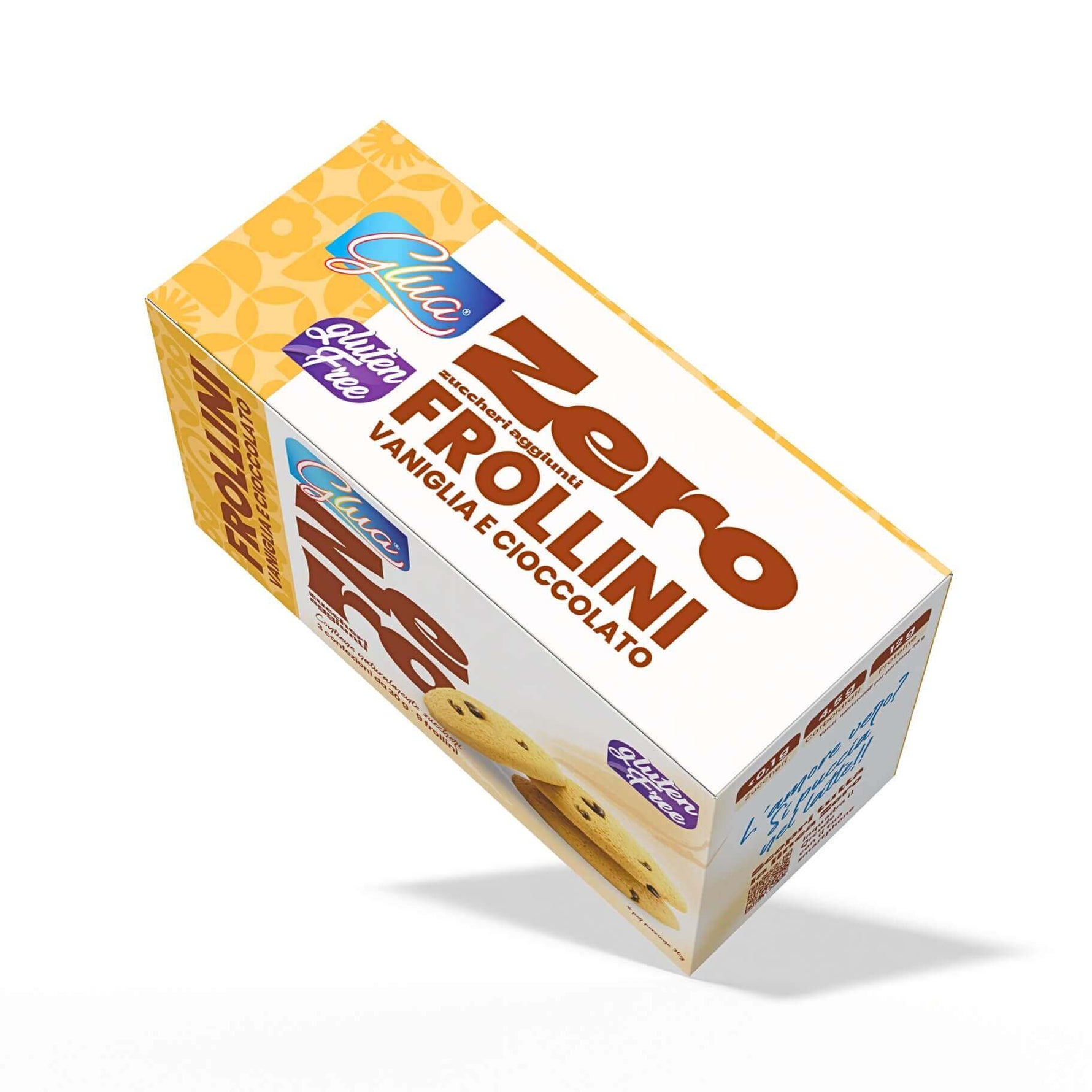 PRODOTTO DOLCIARIO DA FORNO TIPO FROLLINO AL GUSTO DI VANIGLIA CON GOCCE DI CIOCCOLATO CON EDULCORANTI.