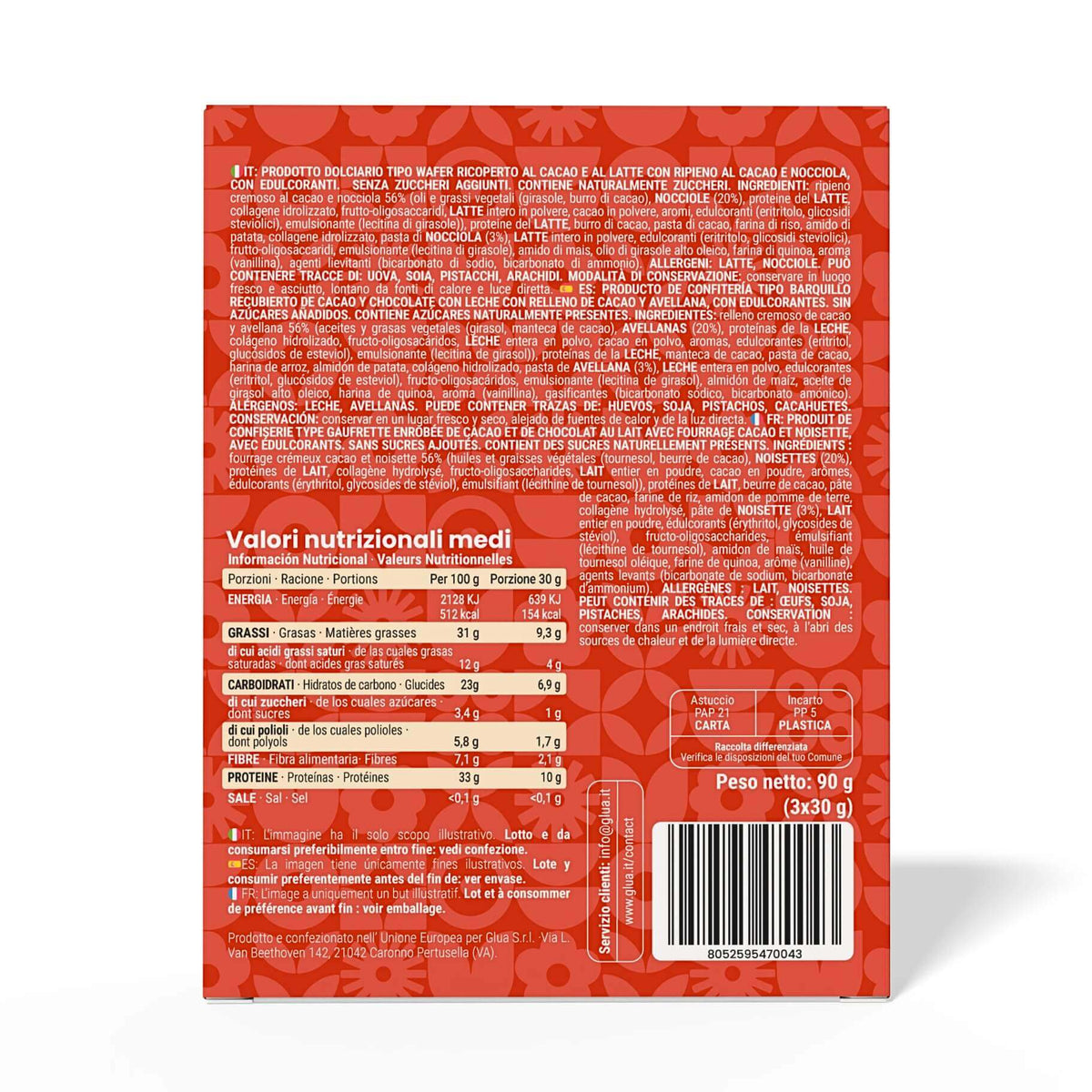 Peso netto 90 g (3 wafer da 30 g)